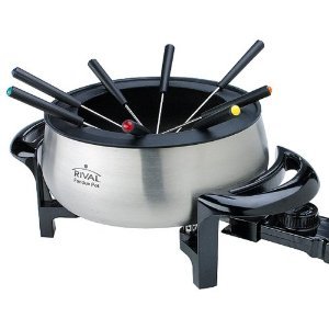 Have an intimate and fun fondue party for friends with the Rival stainless steel fondue maker. This 3 Quart fondue maker features a premium nonstick cooking surface for easy food removal and clean up, cool-touch handles, exclusive SureRelease power cord and a removable adjustable temperature control probe. Fully immersible with cord set removed. Also includes temperature indicator light and 8 fondue forks with a fork holder ring.